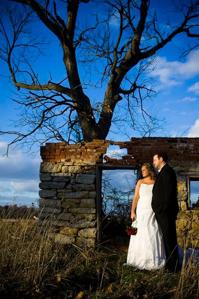 On Halloween, Ben and I were on the road, this time down to Findlay Ohio for our last official wedding of the 2009 season. This week we got to spend our day with Ashley and Chad, who were extremely fun and easy to work with. Ashley had some awesome photo locations picked out for us, including an incredible abandoned structure out in the middle of a corn field. Ashley and Chad also chose to see each other before the ceremony, which made the day flow so smoothly that I recommend this option to every bride who might be considering it. We had a ton of time to rock out the formal session which yielded some great images. Be sure to check out their slideshow and my favorites below, and don't miss all of their images soon to be posted right HERE!